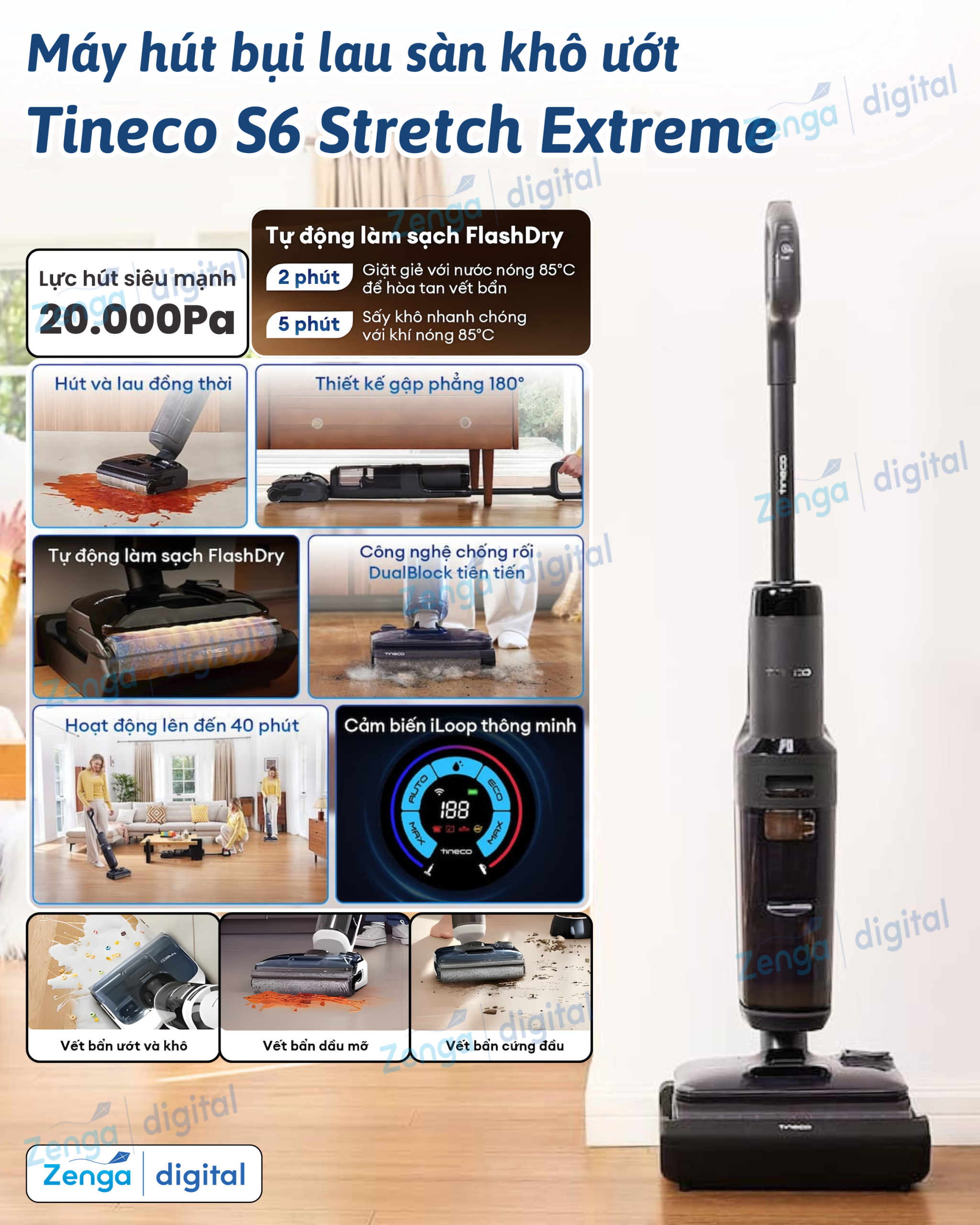 | Tên sản phẩm | Máy hút bụi lau sàn khô ướt Tineco FLOOR ONE S6 Stretch Extreme |