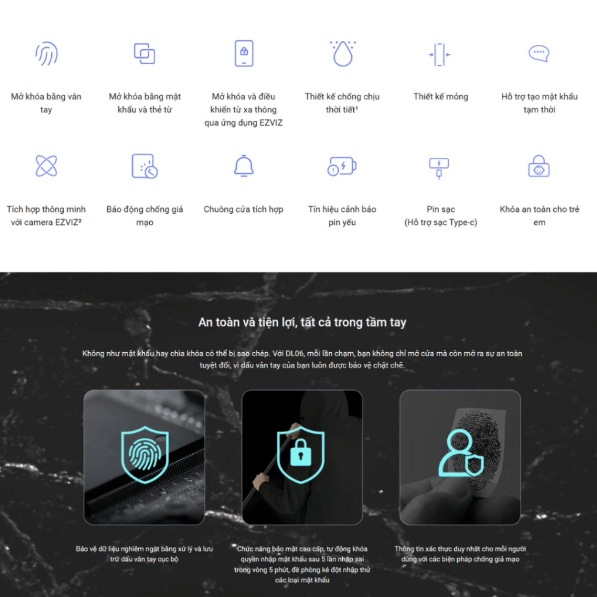 So với các mẫu khóa thông minh khác trên thị trường, Ezviz DL06 nổi bật ở: